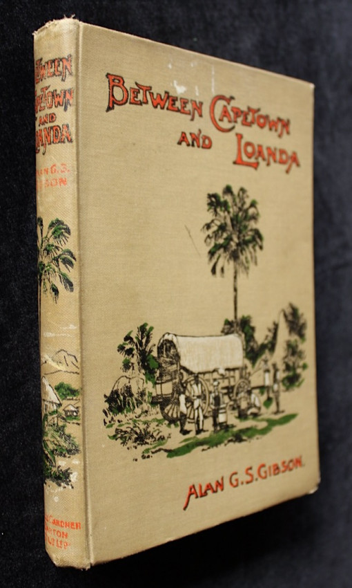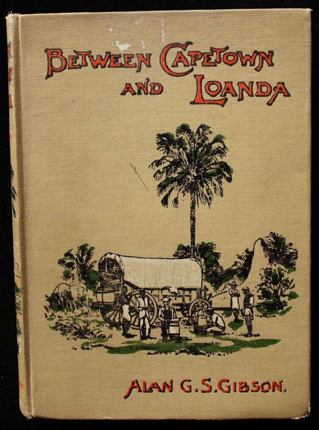 Publisher's pictorial cloth binding with the image of an outspanned ox-wagon and palm tree on the front board and spine.