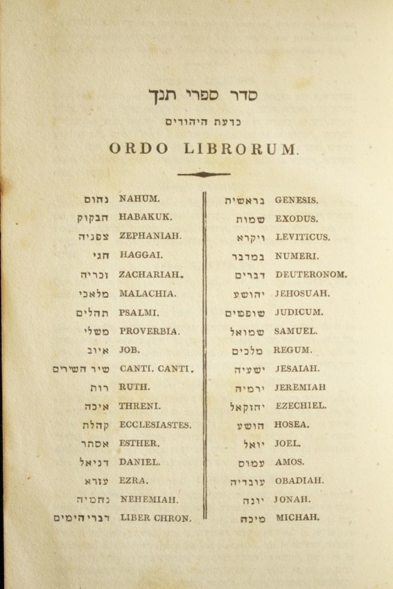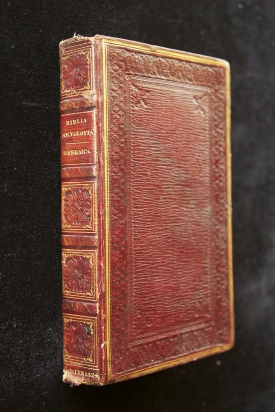 A very attractive copy in contemporary wine-red straight-grained morocco gilt, blind tooled borders to boards, the spine with raised bands separating gilt-bordered blind-embossed panels, title in gilt "Biblia Polyglotta / Hebraica".