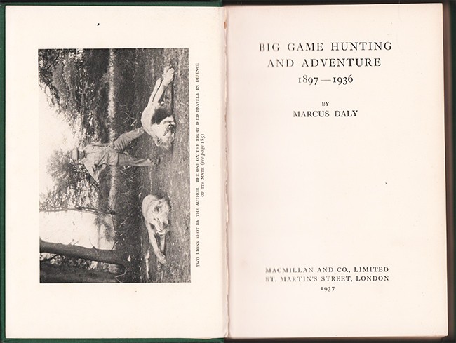 Czech (Kenneth) AN ANNOTATED BIBLIOGRAPHY OF AFRICAN BIG GAME HUNTING BOOKS 1789 -1999 page 73 : With a career spanning nearly four decades, Daly hunted big game in various parts of Africa. Included are elephant hunts in Kenya and the Congo in the area of Tanaland and the Lower Wakamba, lion in Matabeleland, as well as safaris to French Equatorial Africa, the Sudan and Cameroons for all manner of game including gorilla. He maintains that of elephant, buffalo and rhino, all are equally dangerous depending on when and where they are met. He includes interesting chapters on why game is disappearing, and on rifle selection and shooting.