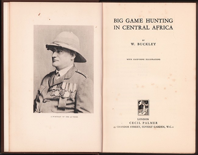 Czech (Kenneth) An Annotated Bibliography of African Big Game Hunting Books 1785 -1999, (new edition 2011) page 42: One of the better elephant hunting titles, Buckley hunted pachyderms primarily near the headwaters of the Nile in Uganda Territory and Manyema region of the Belgian Congo. His descriptions of the regions are quite good. There is also mention of lion hunting near the Chari River.