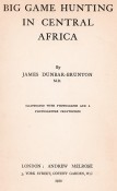 Czech (Kenneth) An Annotated Bibliography of African Big Game Hunting Books 1785 -1999, (new edition 2011) Pages 87- 88: The author hunted primarily in the regions near Lake Bangweulu, and the Luangwa and Luapula Rivers in North East Rhodesia. He presents the game he collected in a chapter by chapter analysis , and includes roan, hartebeest, puku, lechwe, sitatunga, tsessbe, sable and eland. There are also excellent descriptions of hunting elephant, buffalo, hippo and rhino, as well as bagging lion and leopard near Lake Mweru.