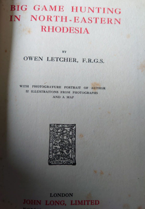 Owen Letcher was a British gentleman adventurer and one of the first 'tourist' trophy sportsmen who made their appearance with the arrival of the railway at the Zambezi. He had studied mining and became a mining journalist in the 1920s in South Africa.