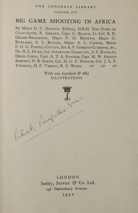 (Czech, An Annotated Bibliography of African Big Game Hunting Books 1785 to 1950, p.110).