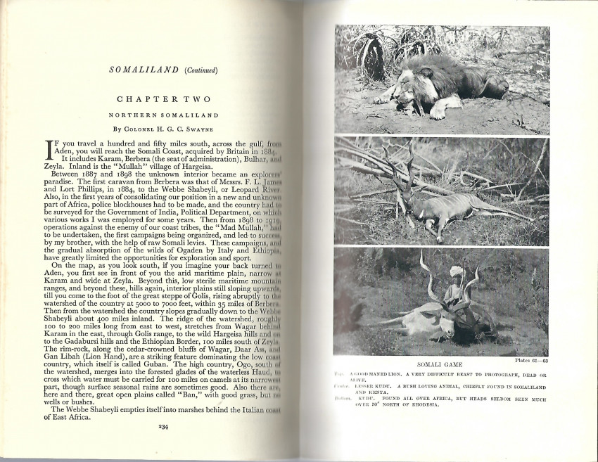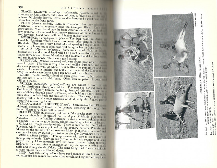 Published by Seeley, Service & Co Ltd (1951), London, 1951. Reprint of the 1932 original, part of the "Lonsdale Library of Sports, Games & Pastimes" series. 8vo. 445 pp. Illustrated from photographs, plates, endpaper maps. Contributors include Denis Lyell, Burrard, Powell-Cotton, and Gordon-Cumming. Czech Africa, p. 110 (for the first edition):