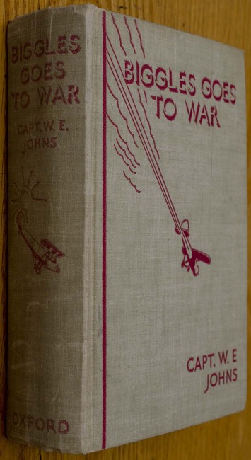 Hardcover Quarto bound in buff cloth with red decoration of a plane on the front board/spine.