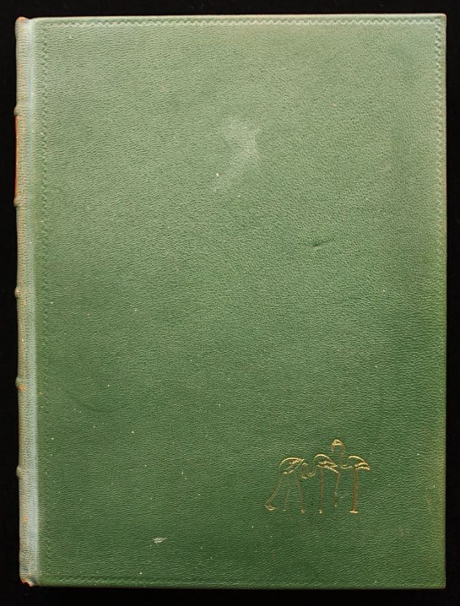 Publisher's full-leather de luxe binding. Five raised band on the spine and gilt embossed design of three flamingoes on the front panel.