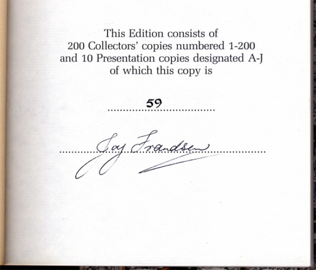 Number 59 of the collector\'s edition limited to 200 copies, signed by the author.