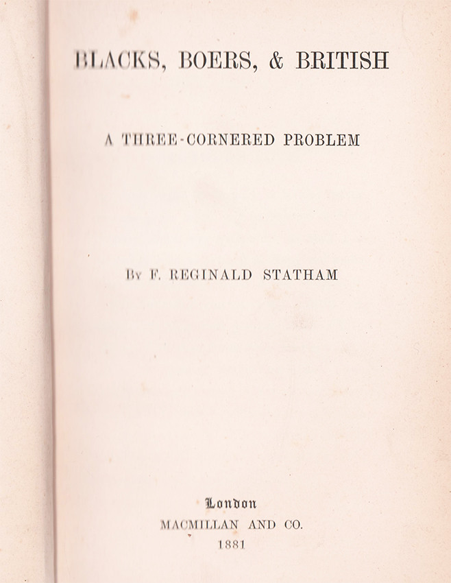 Dictionary of South African Biography volume 1 page 278 -279: At the time of the Zulu War Statham was editor of the Natal Witness in Pietermaritzburg in which position he acted very independently - so much so that he clashed with the owner of the paper who feared for his commercial interests. Blacks, Boers and British is a book remarkable for the progressive political concepts expounded in it.