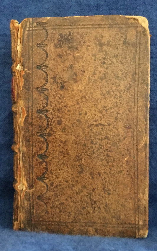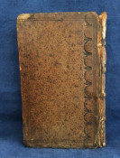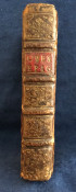 Early full leather binding, heavily gilt spine, red morocco gilt-lettered label, blind ruled covers with decorative roll at spine edge; fore-edges of boards also blind stamped. Points rubbed, chipped; joints cracked.