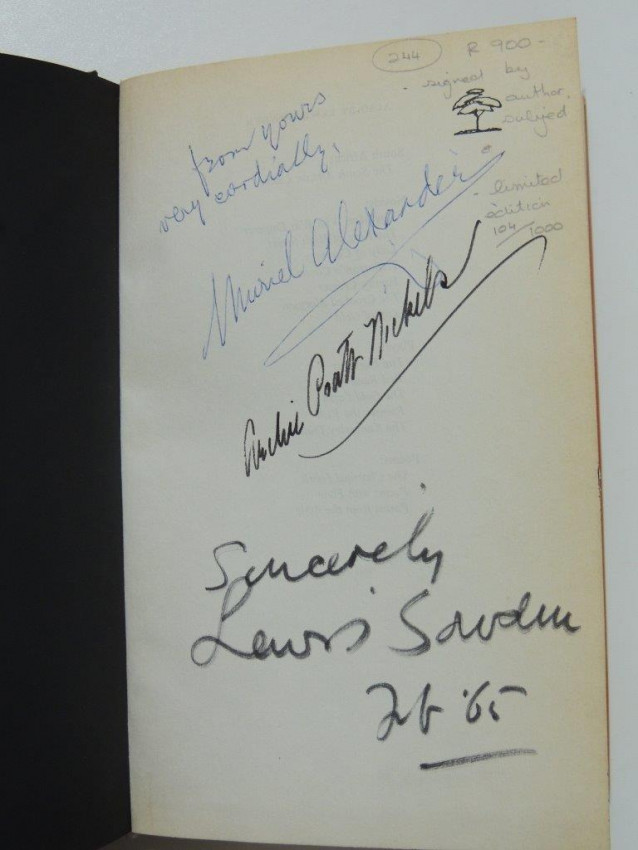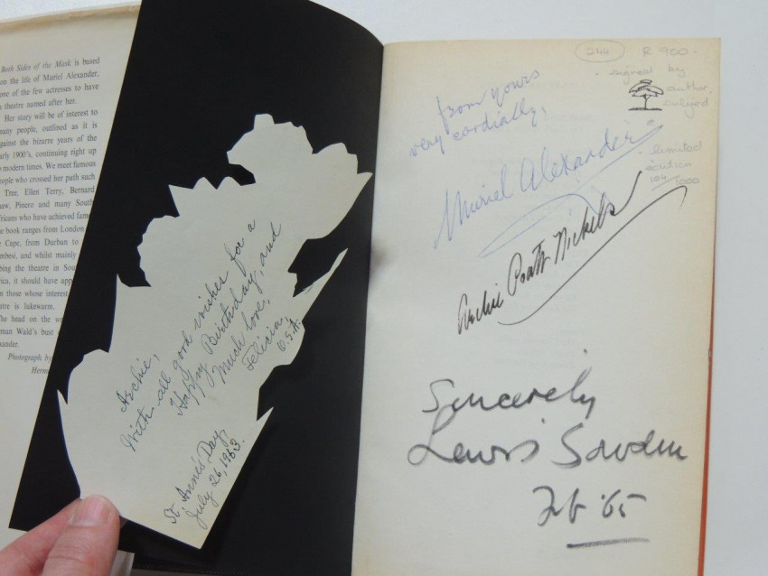 Inscribed and signed by Muriel Alexander, the author and a third person.