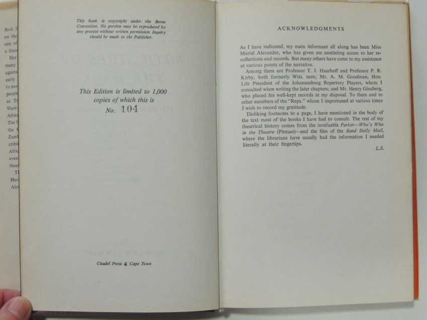 The book ranges from London to the Cape, from Durban to the Zambesi, and whilst mainly describing the theatre in Southern Africa, it should have appeal to those whose interest in the theatre is lukewarm.