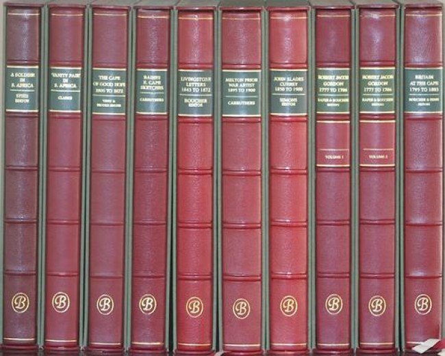 The volumes are: Livingstone Letters, 1843 to 1872 (1985); John Blades Currey, 1850 to 1900 (1986); Melton Prior: War Artist, 1895 to 1900 (1987); Robert Jacob Gordon: Cape Travels, 1777 to 1786 2 vols (1988); A Soldier in a South Africa, 1899 to 1902 (1989); Thomas Baines: Eastern Cape sketches, 1848 to 1852 (1990); ‘Vanity Fair’ in Southern Africa, 1869 to 1914 (1991); Britain at the Cape, 1795 to 1803 (1992); The Cape of Good Hope, 1806 to 1872 (1994).