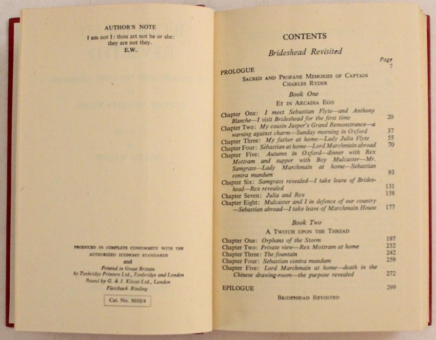 An exceptional copy of Waugh's masterpiece in the dustwrapper. The book is just about fine in the original red cloth with one or two minimal areas of barely noticeable rubbing and a totally unfaded spine. Internally crisp, fine and unmarked and more than likely unread. The front pastedown has a 3mm. vertical ridge from paper overlap (a binding fault) and this has caused a light impression on the adjacent front free endpaper and the following page - not a fault of great significance. In a nearly fine complete non price-clipped dustwrapper which has light edge wear with one or two tiny nicks and a 3mm. circular hole towards the top of the rear flap fold. There is also slight soiling of the rear panel. Please see the images provided.