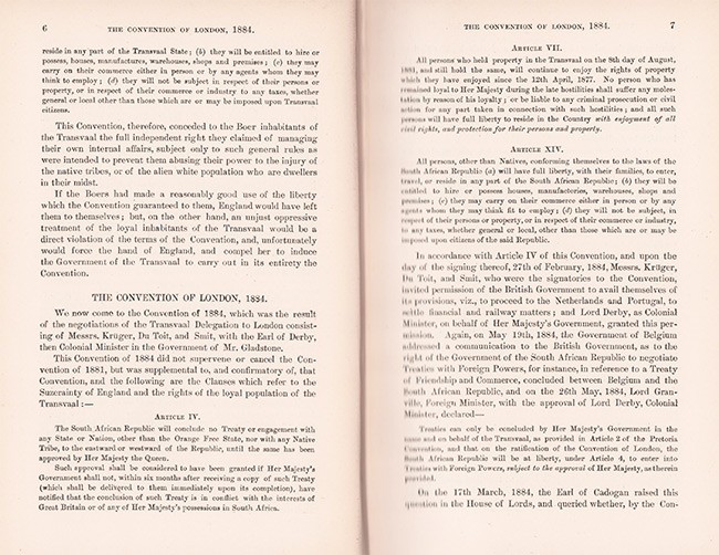 The author reproduces a series of despatches and documents from the Pretoria Convention of 1881 to Mr Chamberlain's despatch of October 10, 1899. Foregoing any impartiality he roundly condemns President Kruger laying the blame for the ensuing conflict entirely at his door and calls for 'the abolition of the oligarchy in Pretoria, and the effacement as self-governing States of the South African Republic and the Orange Free State, for which President Kruger and President Steyn, with their Ministers, and obsequious followers, will be entirely responsible, and for which history will adjudge them guilty'.