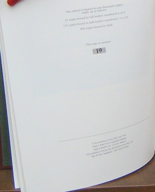 De luxe edition, limited to 125 sets of 10 volumes, this is number 19, Brenthurst Press, second series, half leather with red leather spine, corners and red, white and green marble papers, with matching slipcase, bespoke bindings by Peter Carstens, also with booksellers original invoices, number nine, 1992, 71 plates, 263 pages, condition: very good.