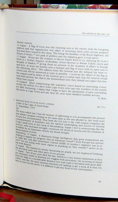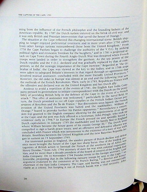 The period of Cape history known as the 'first British occupation' ranks amongst the most colourful in south Africa's past. In the eight years from 1795 to 1803, the colony at the cape experienced three different regimes, pitched battle and conquest, burgher revolt and frontier war, naval mutiny and khoikhoi rebellion. These troubled times also produced an extraordinary crop of memorable people: Lord Macartney and General Francis Dundas, Lady Anne Barnard and John Barrow, Sir George Yonge and W.S. van Rijneveld, Landdrost Maynier, Ngqika, and many more (from the preface). This volume comes with the original invoice and bookseller's label from Thorold's (22 years ago the price of this volume was R1375.90)