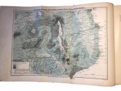 Rebound in blue boards, the contents are somewhat damaged with mold damage towards the rear. Foxing throughout, the text block is mostly clear and the maps are in good condition.