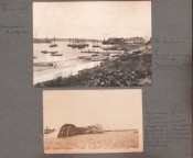25 photographs mainly of British East Africa (170 x22mm) and a few of German East Africa. Each photograph has a handwritten date at the top of the page and a caption underneath. They are all taken in 1918. They are laid down in an album with cloth covers – the front cover is half green cloth and half brown pebble grained cloth, which is slightly soiled and worn, with the title at the bottom – Photo Sketches. The photographs are in good condition.