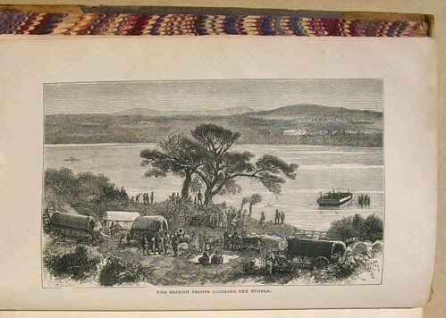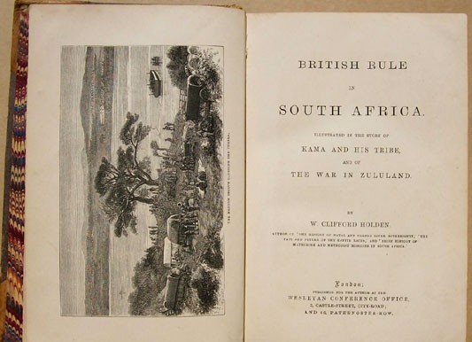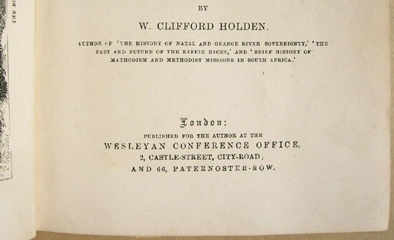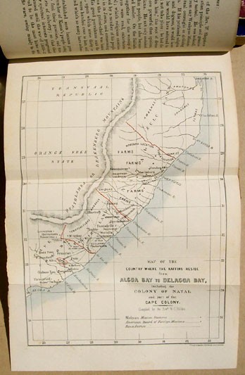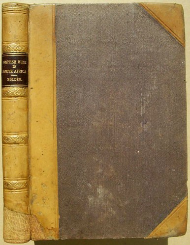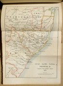 Late Victorian style leather and book cloth binding with a title label on the spine and gilt decorations on the raised bands. Marbled paper end papers, with the same design now only faintly visible on the book block edges. viii prelims, 218 pages, 2 fold out maps, 6 black and white illustrations, followed by 6 pages of the publisher's advertisements.