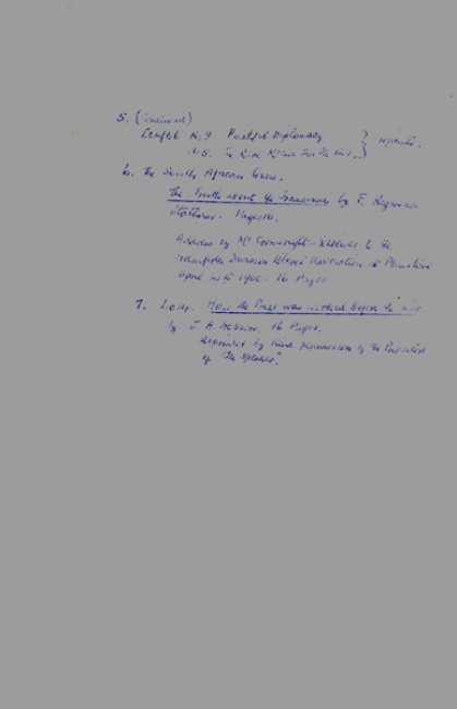 A collection of seven pamphlets on the subject, bound together in hardcovers. Please see attached images of a handwritten summary of authors and contents