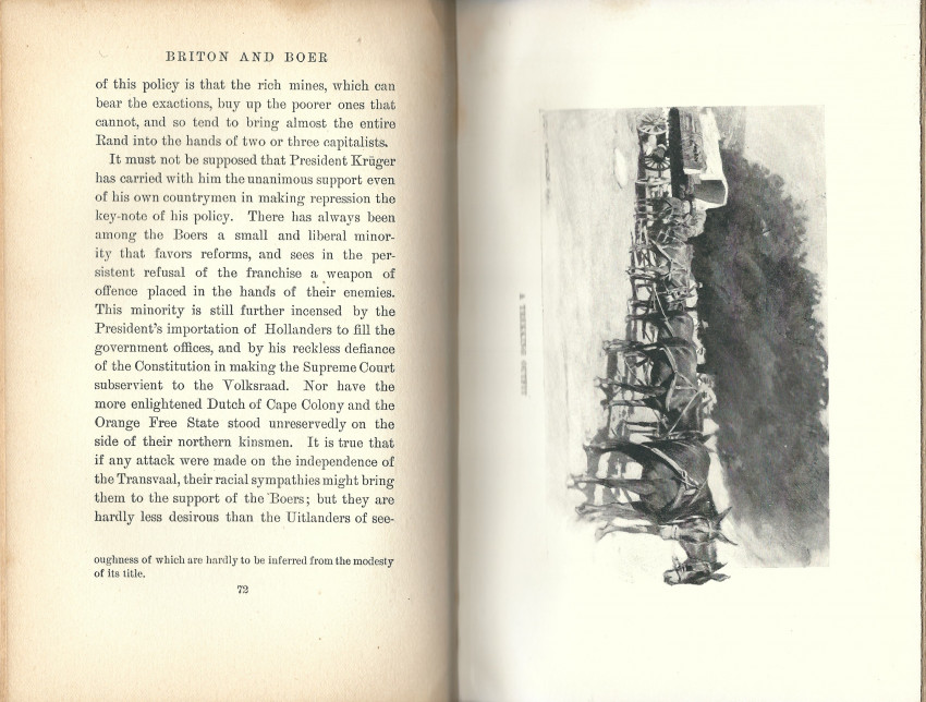 New York, Harper Brothers, 1900. 1st Edition. 251p., frontis, illustrations, folding colour map tipped-in at rear (fine), in original decorated Yellow cloth (printed in red and black) binding is sound but slightly soiled and rubbed to the spine panel. This edition lacks the "third" side of the South African question-- as issued.