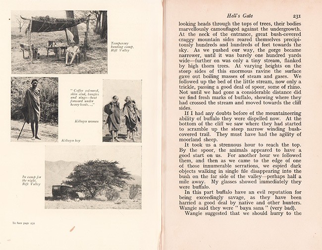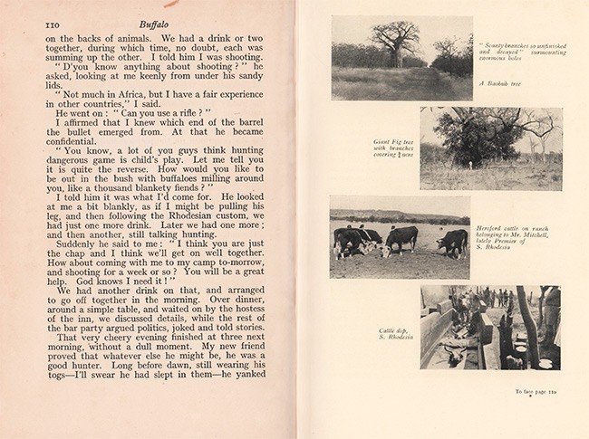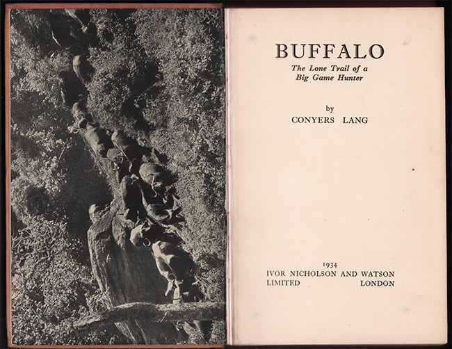 Czech (Kenneth) AN ANNOTATED BIBLIOGRAPHY OF AFRICAN BIG GAME HUNTING BOOKS 1785 -1999 Page 159: Lang embarked on an extended journey, partly by car, from cape Town, through Rhodesia, Tanganyika and into Kenya. He hunted lions and buffalo near the Sand River, then travelled by car into Northern Rhodesia to hunt buffalo along the Kafue River. After being delayed by a storm of locusts, he continued into Tanganyika, bagging more buffalo and hippopotamus near Lake Rukwa and the Songe delta where he barely survived a buffalo stampede that killed one of his native scouts. Later in Kenya, Lang was badly mauled during another buffalo hunt and forced to curtail his travel.