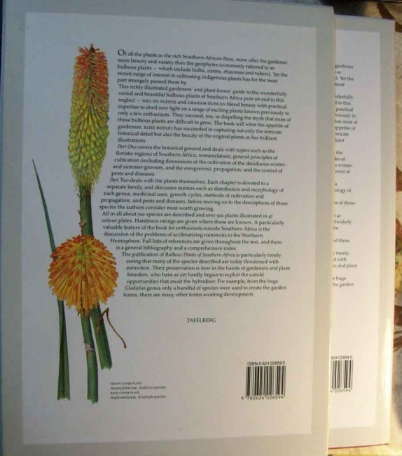 This richly illustrated gardeners' and plant-lovers' guide to the wonderfully varied and beautiful bulbous plants of Southern Africa puts an end to this neglet- Niel Du Plessis and Graham Duncan blend botany with practical expertise to shed new light on a range of exciting plants known previously to only a few enthusiasts. They succeed, too, in dispelling the myth that most of these bulbous plants are difficult to grow. The book will whet the appetite of gardeners. Elise Bodley has succeeded in capturing not only the intricate botanical detail but also the beauty of the orginal plants in her illustrations.