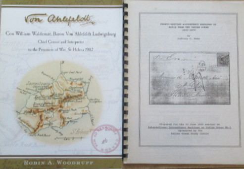 3) Con William Waldemar, Baron Von Ahlefeldt Ludwigsburg. Chief Censor and Interpreter to the Prisoners of War, St Helena 1902, by Robin A.Woodruff. Large illustrated paper wrap. Circa 2012. 29.5 X 21cm. 32 pages text with supporting illustrations etc.