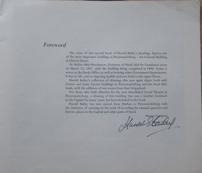 Published by The Natal Witness, Pietermarizsburg.1978. 40 page illustrated wrap with notable buildings and description by the Author/Artist.