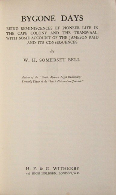 \"Being Reminiscences of Pioneer Life in the Cape Colony and the Transvaal, with Some Account of the Jameson Raid and its Consequences.\"