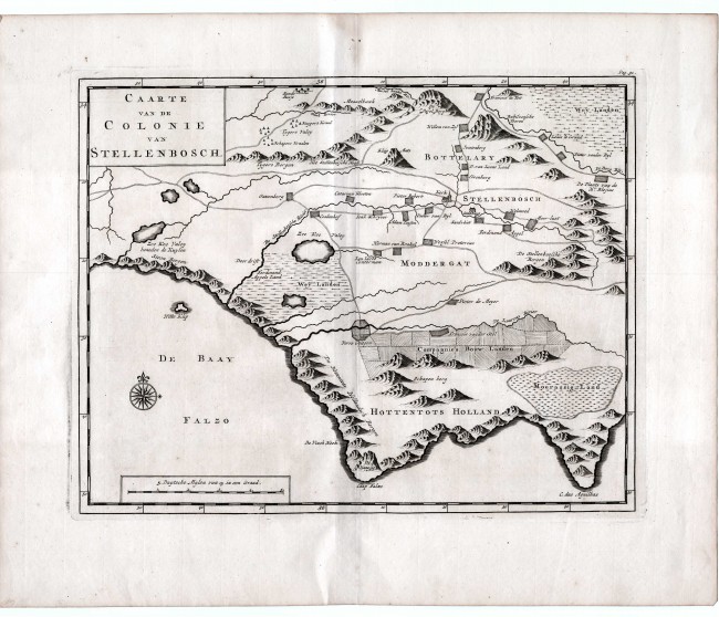 This map appeared on page 91 of of the first volume of the book. All the maps in this book draw heavily from the map published in 1726 by François Valentijn, which, in turn, drew heavily from VOC sources; Valentijn had visited the Cape in 1685, 1695, 1705 and 1714.