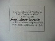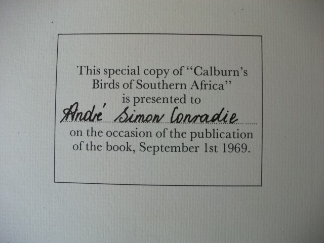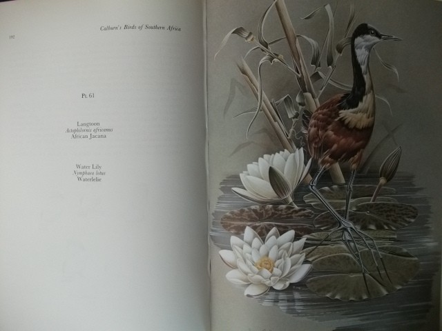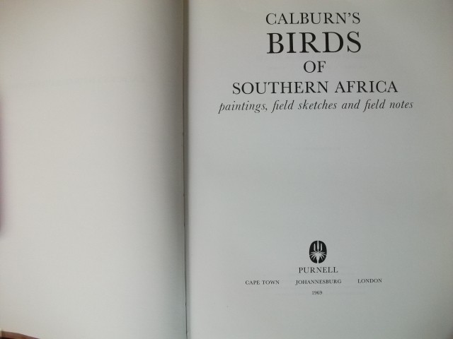 (The unusual review in the Rand Daily Mail gives the details of the genesis of the book: how the painter was seduced from his 9-5 job by a fanatical bird-watcher printer [who had lost both legs in WW2], who wanted to print "the best bird book that has ever been printed", and his choice of the team to help him achieve this.)