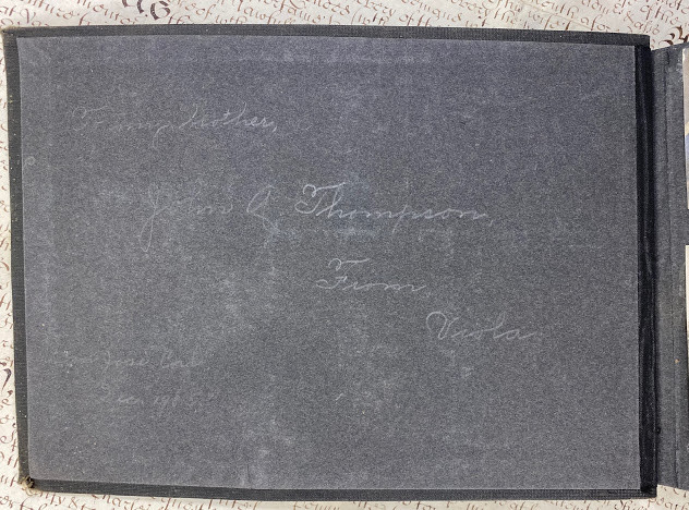 An album of approx. 132 small format photographs. [Undated except for presentation inscription, which reads (in part): ‘San Jose Cal. / Decr. 1905’]. Oblong quarto (6 7/8 x 10 ins; 178 x 254mm), the photos. range from 1 x 1 1/4in. to 5 ½ x 3 ¼ in. Original black cloth (some wear). Provenance: John G. Thompson (penciled presentation inscription on front pastedown “To My Brother / John G. Thompson, / From, / Viola. / San Jose Cal. / Dec. 1905.’).