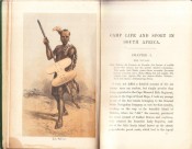 258 pages with 32 pages of additional books by Chapman & Hall at back some of which are uncut; tinted lithographic frontispiece of Zulu warrior, 3 tinted lithographic plates. Original green boards with gilt vignette of a buck and title on upper cover and gilt title on spine; glue residue from reinforcement on spine, corners are slightly bumped but covers are in surprisingly good condition considering age. Very slight foxing on new endpapers.