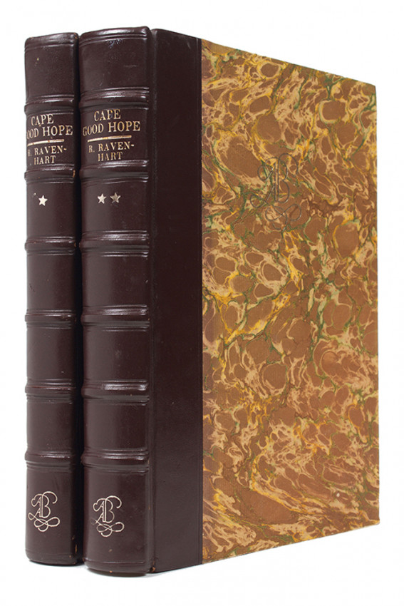 De Luxe edition: 2 volumes, 222 + 527 pages – continuous pagination, tipped in colour frontispiece in each volume, numerous maps and illustrations, quarter brown leather with matching marbled boards, titled gilt on the spine, a very good set.