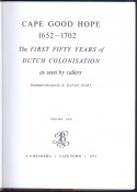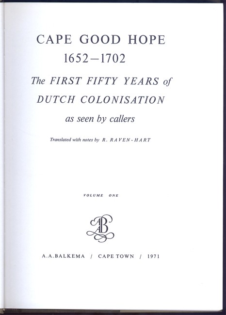 \'During the first fifty years of Dutch colonisation at the Cape of Good Hope many travellers arrived in Table Bay, on their way to the East: some came voluntarily, others by force of circumstance. They came ashore, looked around, observed strange indigenous people, interesting plants and animals; they visited the little settlement, met the local personalities, wondered at the way-of-life. They also consulted and negotiated with the Dutch Officials, and sought help in their difficulties. And, most frequently they recorded their impressions...\'. Editor\'s note.