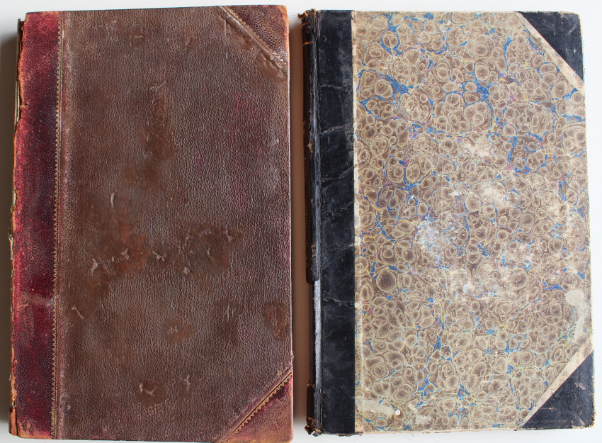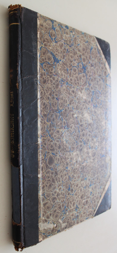 1. Half leather with marbled boards. A section of the leather on the spine is missing. Wear to extremities. 140 pages in good condition.
