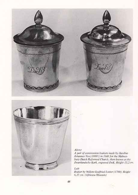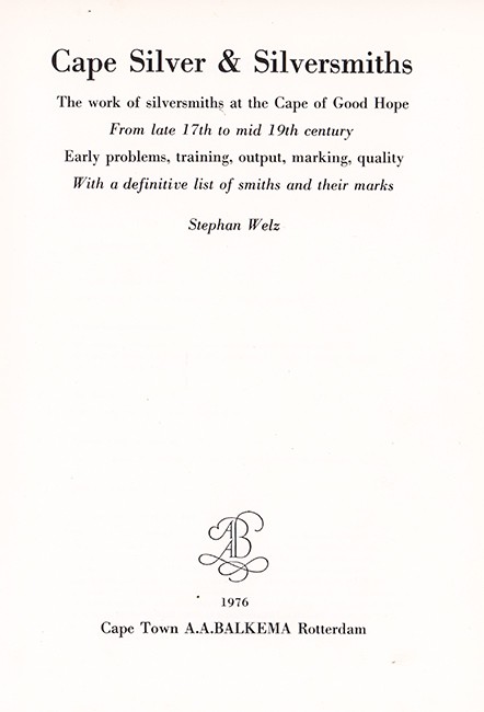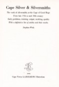 This book is described as an important contribution to the study of Cape Silver. It includes biographical information on Cape silversmiths, a record of the marks used by silversmiths and a survey of objects made from late 17th to mid-19th century.