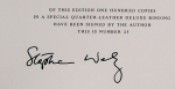 Copy number 25 of an edition limited to one hundred copies signed by the author in a special quarter leather deluxe binding.