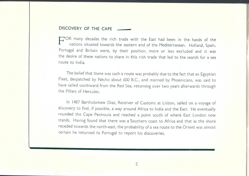 Booklet giving brief history and description of Cape Town, for passengers going ashore