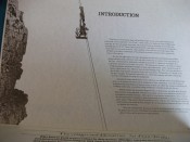 The book is full-bound in ivory synthetic leather boards, with the upper board padded, and hinged at the top. A sepia illustration and lettering are on the upper panel. The images and type inside the book are also in sepia. The title page is on the front free endpaper; [ii] pp of acknowledgments and contents; 51 pp of introduction and captioned illustrations, with the last page printed on the back free endpaper. The contents are printed on patterned heavy ivory matt paper.