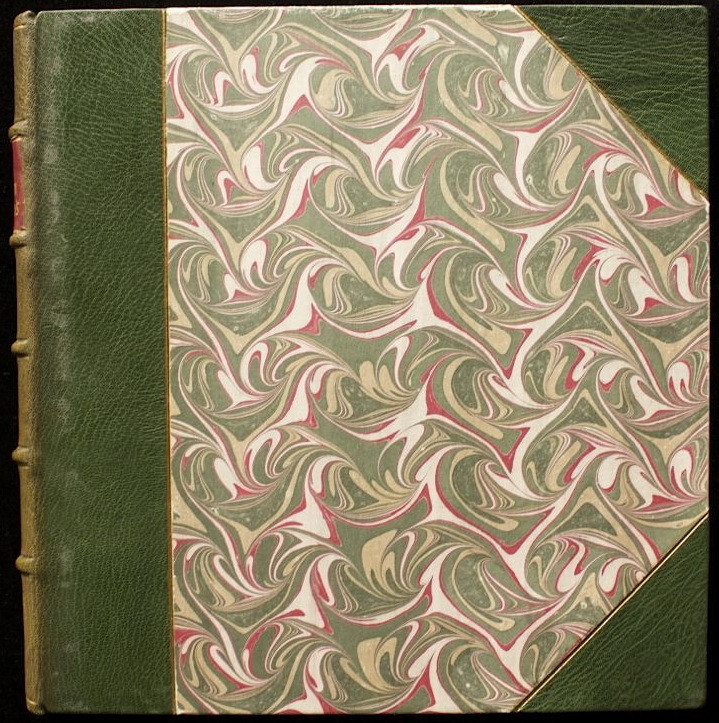This half-leather de luxe edition was bound in Russel Oasis Niger leather by Alan Winstanley of Salisbury, England. The boards are done in hand-marbled paper. Top edge gilt. Housed in a matching silk-lined, marbled paper covered slipcase.