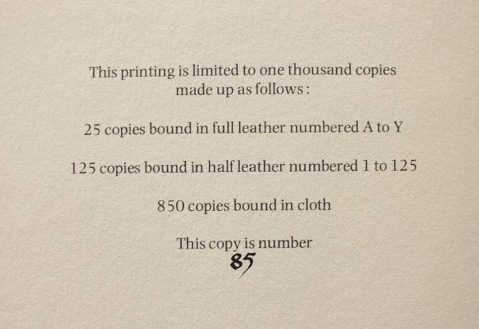 Publisher's limited de luxe edition limited to 125 copies of which this is #85.