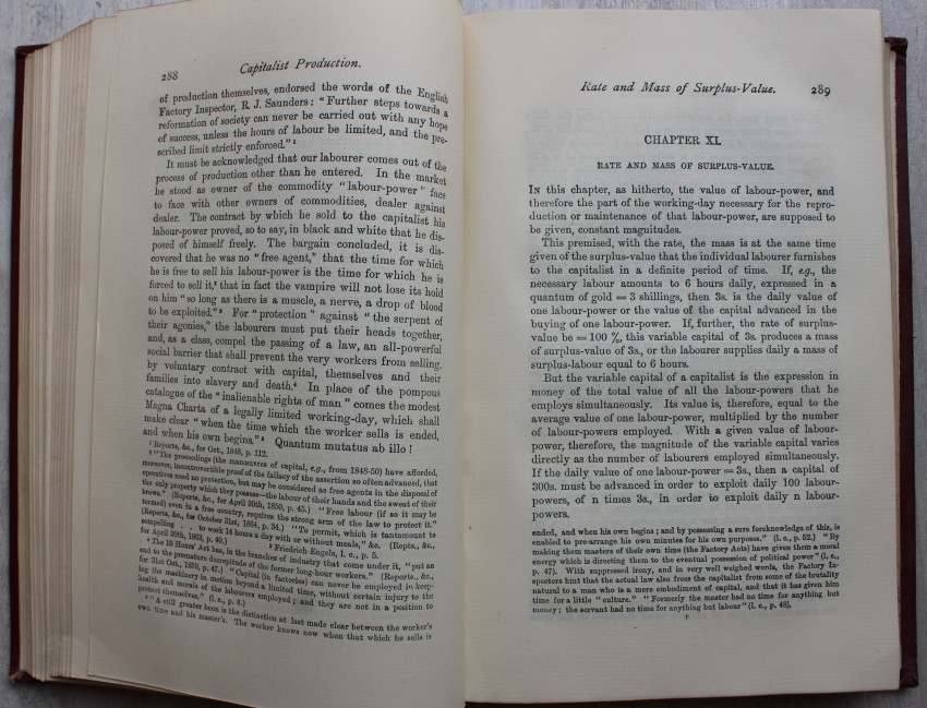Translated from the third German edition, by Samuel Moore and Edward Aveling. And edited by Frederick Engels. This is the 12th edition February 1908. Dark red cloth covers with title to the spine. 816 pages.