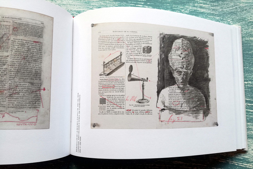 Exploring the imaginarium of Ancient Egypt as seen by century old travelers, William Kentridge gathers a series of drawings and screenshots from his animation films. His drawings, made on sheets of paper found here and there or directly on books, confront his internal geography to the important collections of relics stored in the Louvre: the Scribe, the Sphinx, the Scribble Cat or even the Mausoleum echoes in drawings of artists and travelers – ruins, pyramides, explorators, transformation of lion-cat made by Carraci, Degas, Le Brun or Crapelet.