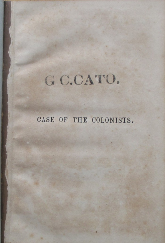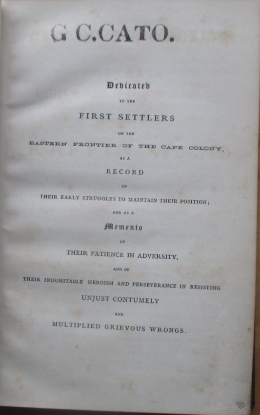 - The half-title page and the dedication page are both stamped G C CATO; though without provenance this book could once have belonged to George Cato the first Mayor of D'Urban who with his immigrant parents originally settled in Grahamstown.