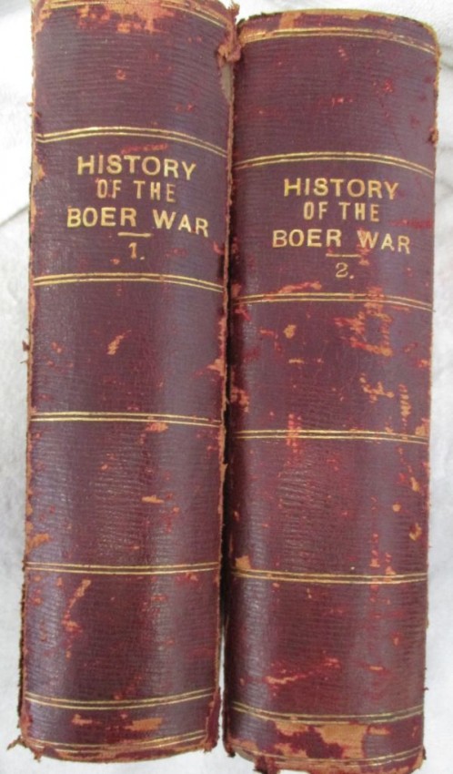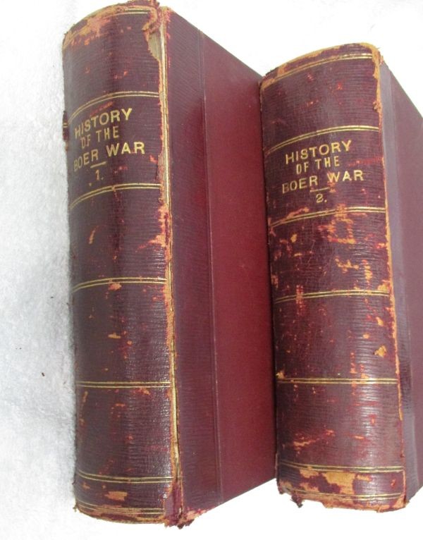 Half Leather Boards. Gilt detail and lettering on spine. Marbled edges to text block. Top sections of spine cracked on volume 1 but intact. Some "flaking" of leather surrounding spine. No markings or inscription in books. Binding tight. Profusely illustrated with pictures, plates and maps.