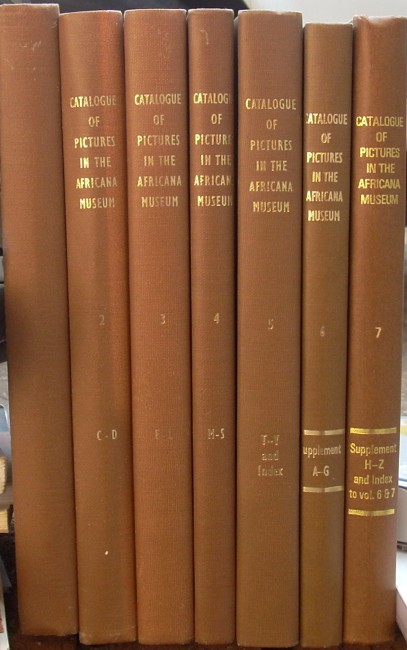 Africana Museum, preface by Anna H. Smith, seven volumes, brown boards with gilt lettering, volumes 1-5, A-Y and index, volumes 6-7, supplements and index, 225 x 290mm, condition: very good.