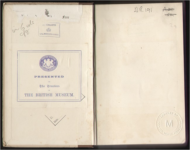 1035 + 565 pages, 8vo, brown cloth backs with cream paper sides, paper title labels on upper covers and gilt titling on the spines, an ex-library set with stamps and library labels, embossed stamp of the Colonial Office Library on the upper covers, paper covered sides soiled and several of the cloth spines are chipped, there is an indication that a paper label has been removed from the base of the spines.