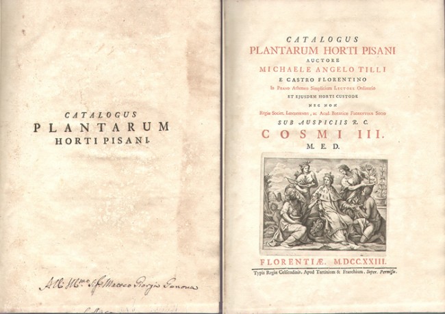 Gunn & Codd: Botanical Exploration of Southern Africa, page 62, 'Another publication......was the account of the plants growing in the Pisa University garden by Michael Angelo Tilli (1655 - 1740), Professor of Botany at Pisa, entitled Catalogus Plantarum Horti Pisani, Florence 1723. Included are fifty plates, eight of which depict South African plants, mostly Aloes and related genera.'